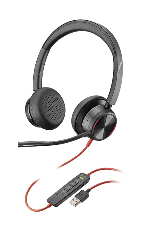 Certified for MS Teams, this Blackwire 8225-M is a high end, corded stereo (2 ear) USB only headset. It offers Active Noise Cancelling.