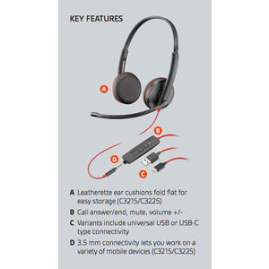 HP Poly Blackwire 3225 USB-A Stereo headset, optimsed for Microsoft Teams