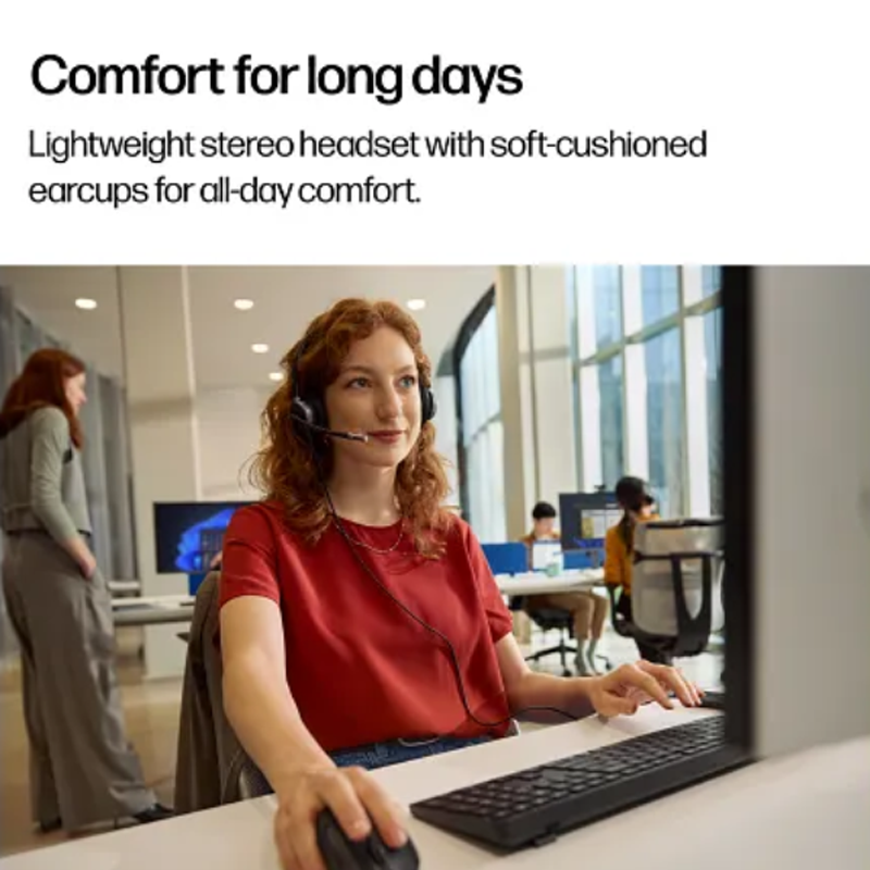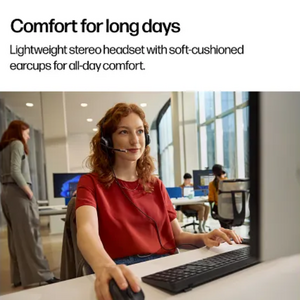 The HP Poly Mission 625 Stereo headset is built for the demanding office environment. Designed for users who spend their day on softphone calls, webinars, and listening to multimedia, this headset provides a perfect balance of professional-grade noise cancellation and high-quality stereo sound. With its ergonomic design and versatile connectivity, it is the ideal choice for boosting productivity in any workspace.