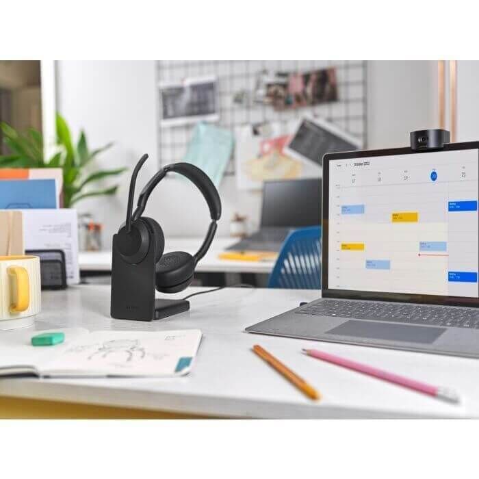 Jabra Evolve2 55 MS Stereo Bluetooth Headset w Charging Stand, Link 380