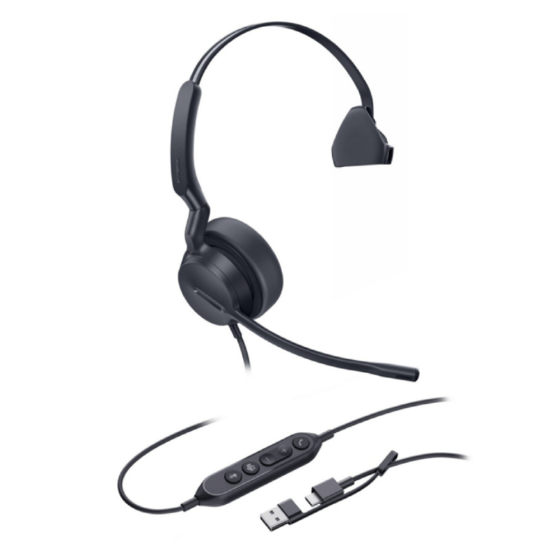 Yealink (UH42) Wired Headphones - Mono - MS Certified - Active Noise Cancelling Microphone - Leather Cushions - USB C + A Adapter
